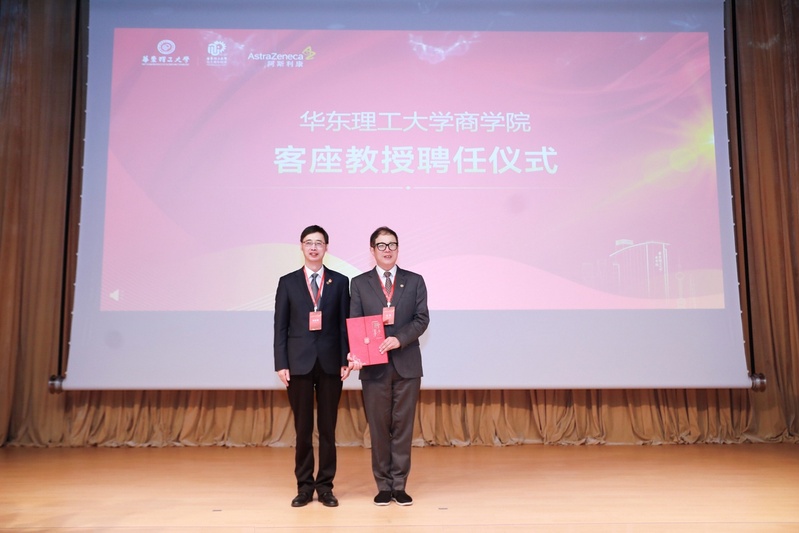 在聘任仪式上,商学院院长马铁驹为王磊颁发客座教授聘书并佩戴校徽,侯丽敏主持聘任仪式,对王磊总裁加入商学院表示诚挚欢迎。
