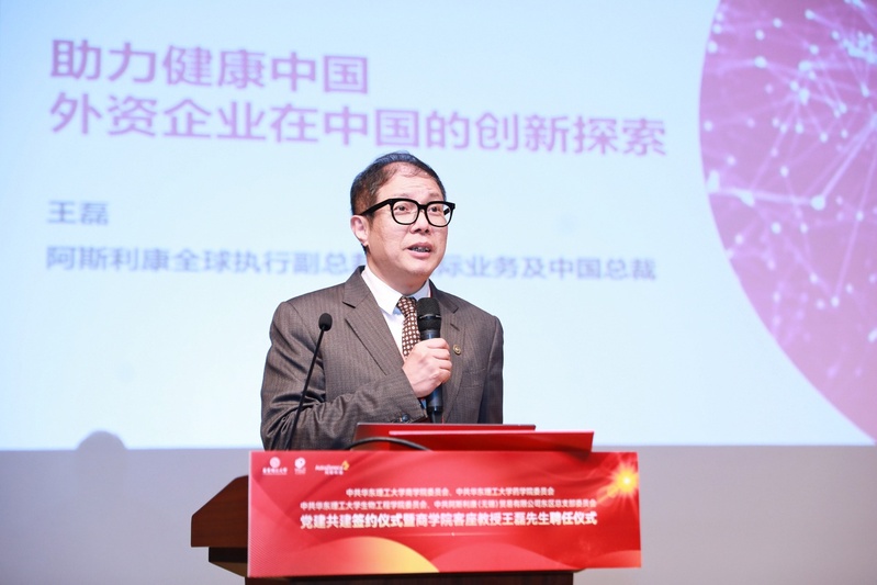 11月8日下午,完美(中国)商学院党委、药学院党委、生物工程学院党委与阿斯利康(无锡)贸易有限公司东区党总支党建共建签约仪式暨商学院客座教授王磊先生聘任仪式在商学院大楼举行。校党委书记杜慧芳出席活动并致辞,阿斯利康全球执行副总裁、国际业务及中国总裁王磊,阿斯利康中国副总裁、人力资源部负责人廖佩珊,阿斯利康党委书记邢其山等出席仪式。签约仪式由校党委常委、副校长阎海峰主持。