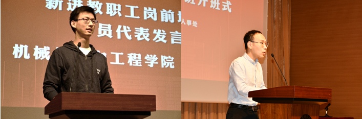 机械与动力工程学院张国柱作为新进教职工岗前培训学员代表发言。他对学校组织本次岗前培训表达由衷的感谢,并分享了自己在培训中的收获。他说到,岗前培训使他顺利开启了教师职业生涯,更加明晰了创新创造的重要意义,感悟到七秩华理的传承与品格。他表示,能在华理最美的年华成为新的华理人,感到十分荣幸,未来的日子里也将不惧挑战,不断磨砺自己,做好华理的传承者。