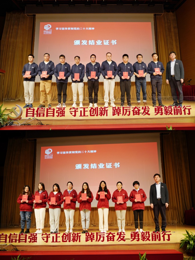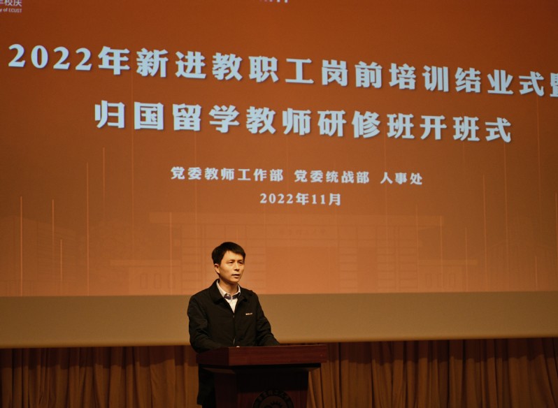 项延训对新进教职工圆满完成培训表示祝贺,希望新进教职工、归国留学教师把握好各类学习机会,学懂理论,增长才干,成为优秀的新时代华理“青椒”。他以“以党的二十大精神为指引做新时代华理奋斗者”为题,对青年教师提出3点期望。一要坚守初心,奉献教育强国。将“上好一堂课”作为对自己职业生涯起点的自我要求,深入青年学生,关注学生成长。二要攻坚克难,矢志科技报国。充分发挥自身优势,运用好前沿科技知识、先进理念,积极投身创新创造实践,成为华理未来的创造者、突破者。三要慎微慎行,不负教师荣光。时刻谨记人民教师身份,无论在课堂上、生活中,都要对标《新时代高校教师职业行为十项准则》,找差距、明底线,做到为人师表、率先垂范。他强调,高校是坚持党的领导的坚强阵地,学习宣传贯彻党的二十大精神将是学校当前和今后一个时期的首要政治任务。希望青年教师在学习中深刻理解党的二十大报告提出的“三个务必”“三件大事”“中国式现代化”“五个重大原则”“五个必由之路”“六个必须坚持”等深刻内涵,感悟思想伟力,坚定信心,奋勇前进,切实把所学所思落实到立德树人的实践中,体现到教书育人的行动上。