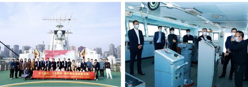 为深入学习贯彻党的二十大精神,加强党史学习教育,11月16日下午,财务处党支部与农行上海分行机构业务部党支部、徐汇支行公司金融部党支部赴“远望1号”测量船联合开展主题党日活动,双方全体党员、积极分子及党外处级干部共35人参加。农行上海分行党委委员、副行长张国兴,分行机构业务部总经理奚佳音,徐汇支行党委书记、行长陈勇刚等参加了本次活动。副校长李涛作为普通党员出席活动。