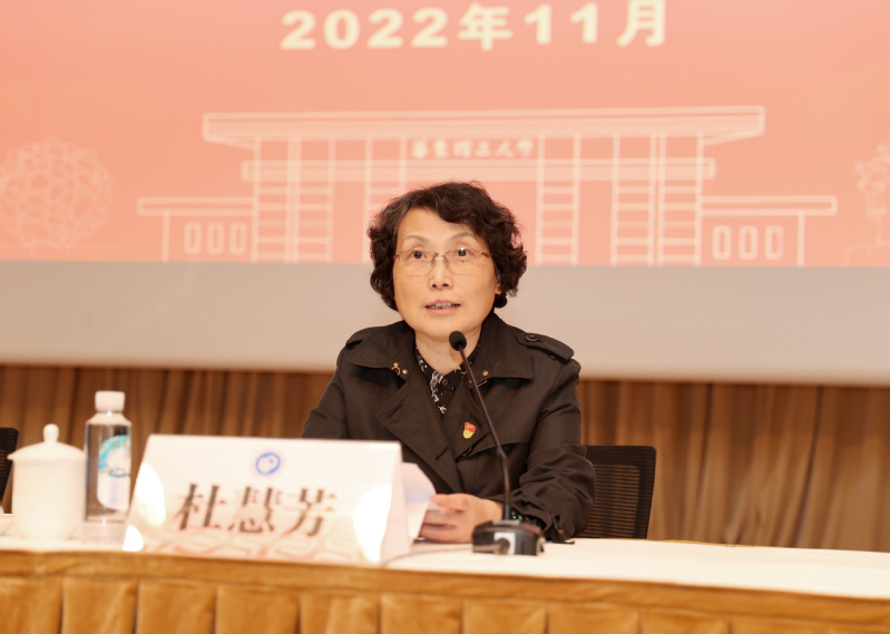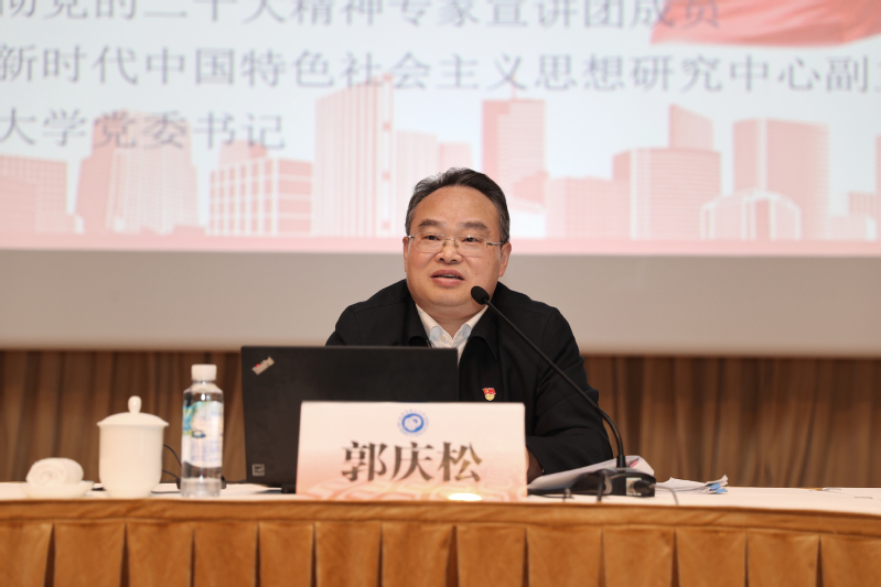 杜慧芳总结指出,郭庆松教授的报告系统全面、生动详实,既有思想高度又有实践深度,对我们深刻认识“教育、科技、人才是全面建设社会主义现代化国家的基础性、战略性支撑”具有十分重要的指导意义。杜慧芳就下一阶段继续做好学习宣传贯彻党的二十大精神工作提出要求。一是要进一步提高政治站位,切实把思想和行动统一到党的二十大精神上来。党的二十大报告明确了加快建设教育强国、科技强国、人才强国的战略任务,我们要始终坚持以习近平新时代中国特色社会主义思想为指导,用党的二十大精神武装头脑、指导实践、推动工作,深刻领悟“两个确立”的决定性意义,进一步增强“四个意识”、坚定“四个自信”、做到“两个维护”。二是要进一步强化担当,认真抓好党的二十大精神的贯彻落实。一分部署,九分落实。各二级党组织要聚焦党的二十大提出的新时代新征程的使命任务,聚焦全面建设社会主义现代化国家对教育提出的新要求,坚持目标导向、坚持需求导向、坚持效果导向,加强组织领导,创新方式方法,开展内容丰富、特色鲜明的学习宣传贯彻活动。三是要进一步凝聚力量,切实把学习成效转化为推动学校事业高质量发展的实绩实效。各级党组织要全面贯彻党的教育方针,落实立德树人根本任务,坚定不移推进全面从严治党,全面提高人才自主培养质量,着力造就拔尖创新人才,努力培养德智体美劳全面发展的社会主义建设者和接班人,确保党的二十大精神落实到办学治校各方面全过程,切实把学习成果转化为推动学校高质量发展的生动实践,努力在中国式现代化的宏伟征程上作出新的更大贡献!