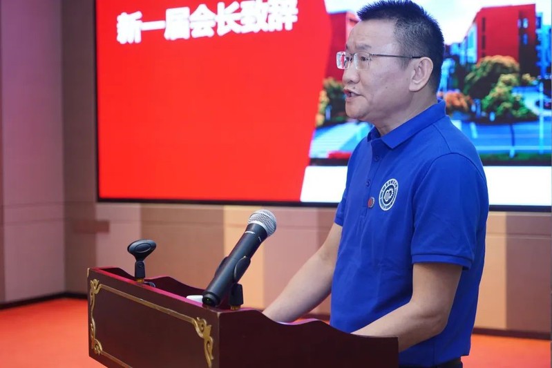 图片说明:新任会长陈山讲话