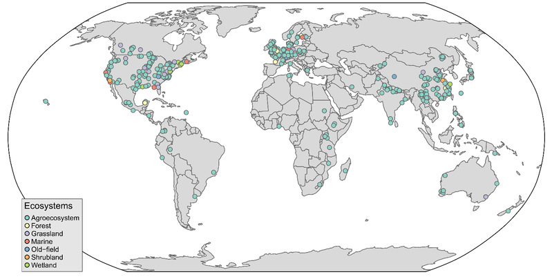 已有理论研究与实践探索表明,利用生物多样性防控植物有害生物,是安全可行的生态环保技术途径之一,实施该技术控害的理论支撑主要来自物种多样性控害,例如,天敌假说、资源集中假说、保险假说、聚集假说(Wan* et al., J. Appl.Ecol., 2022)、营养级联动理论(Wan et al., Nature Plants,2020)等。然而,基因多样性(或称“遗传多样性”)控害的理论相对较少。鉴于此,该论文整合了全球413个植物多基因与单/纯基因的比较试验数据,结果显示:在农业、森林、草原、湿地、海洋等生态系统,增加植物基因多样性,提高了捕食性和寄生性天敌的丰度和捕食/寄生率,降低了植食性昆虫、杂草以及植物病害、线虫的侵害,提升了作物产量与品质以及植物生产力;同时发现植物多基因与单/纯基因对增加农业、森林、草原等生态系统中的天敌及其增强控害效果并无显著影响。因此,在该类系统实施植物保护技术时,只需在主栽植物田块通过间套作同种其他1个品种,便可实现对植物病虫草的控制。