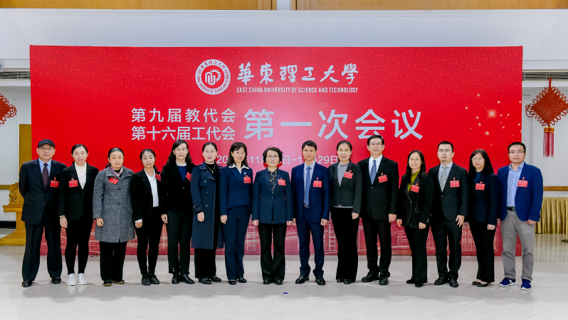 会后,校党委书记杜慧芳、党委副书记项延训与新一届教代会执行委员会委员、工会委员会委员、经审委员会委员合影。