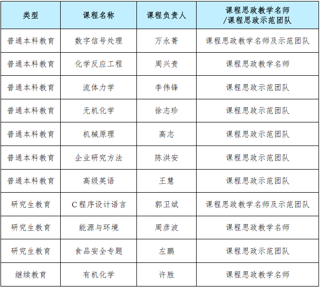 迄今学校已重点培育110门本科示范课程、22门研究生示范课程,形成了以点带面的示范效应;同时,所有优秀微视频均在学校多层次信息化学习平台上示范共享,起到了很好的辐射引领作用。截至目前,学校获评教育部课程思政示范课程2门、上海市课程思政示范课程11门、上海高校党史学习教育与课程相融合示范课程3门;3门课程上线人民网“人民公开课-课程思政”专栏、6门课程思政微课登录“学习强国”平台。此外,学校有6个案例分获全国化工类专业优秀课程思政案例一、二、三等奖;2门课程获评第二届全国本科院校化工类专业教师课程思政能力竞赛特等奖、二等奖。