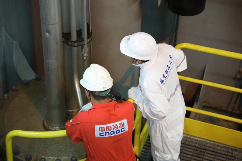 华理科研人员和中海油工作人员工作照