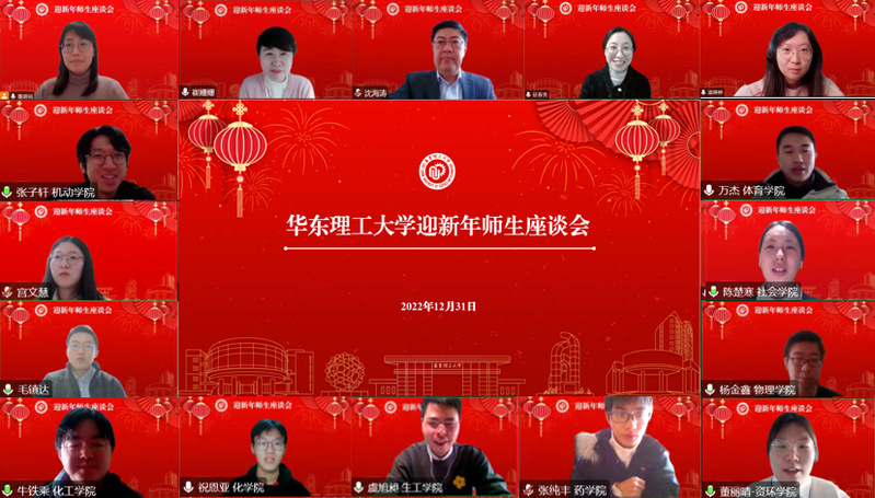会上,沈海涛主动询问了师生们的近期身体状况、课业考试安排、离校返乡计划等,关心大家学习、生活上的困难,也向大家送上新年的祝福。他表示,2022年是极其不平凡的一年,是重重困难,更是久经考验,华理学生和老师们共克时艰、砥砺前行,展现出新时代青年自立自信、乐观向上、成熟理性、担当有为的昂扬风貌。他指出,今年是意义非凡的一年,党的二十大顺利召开,学校迎来70周年校庆,面向新时代新征程,希望广大华理青年们继续传承发扬华理的优良传统,自信自强、爱党报国、敬业奉献、勇于创新,努力学习学科知识、练就过硬本领,不断提升与人交往、团队协作、跨文化交流、文字和语言表达等方面的能力,以求真务实、守正创新、昂扬奋斗的态度面对新的一年。最后,他向长期奋战在一线的学工系统同志们表示感谢。
