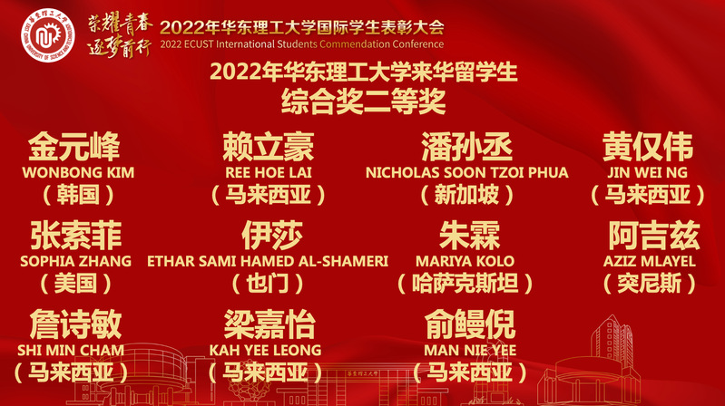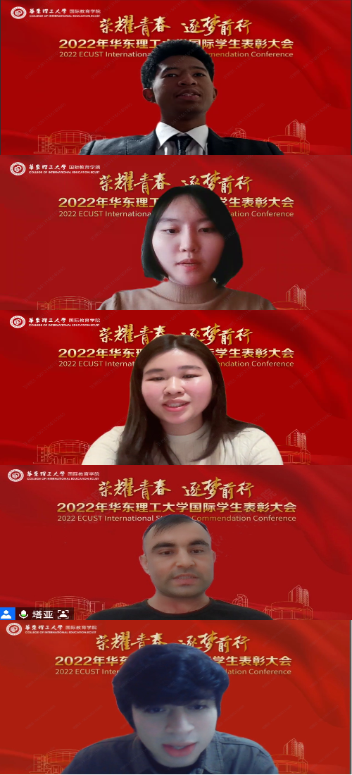 获奖学生代表曾重(乍得)、张索菲(美国)、林美君(印度尼西亚)、塔亚(巴基斯坦)以及2022年国际学生优秀大使代表亚内斯(萨尔多瓦)发表感言,对老师的指导与学校的培养表示感谢。“过程和成绩同样重要”,通过一系列比赛与活动,他们学会克服挑战、稳步坚持和精益求精,今后将继续努力学习、积极实践,为华理增光添彩而奉献出自己的力量。