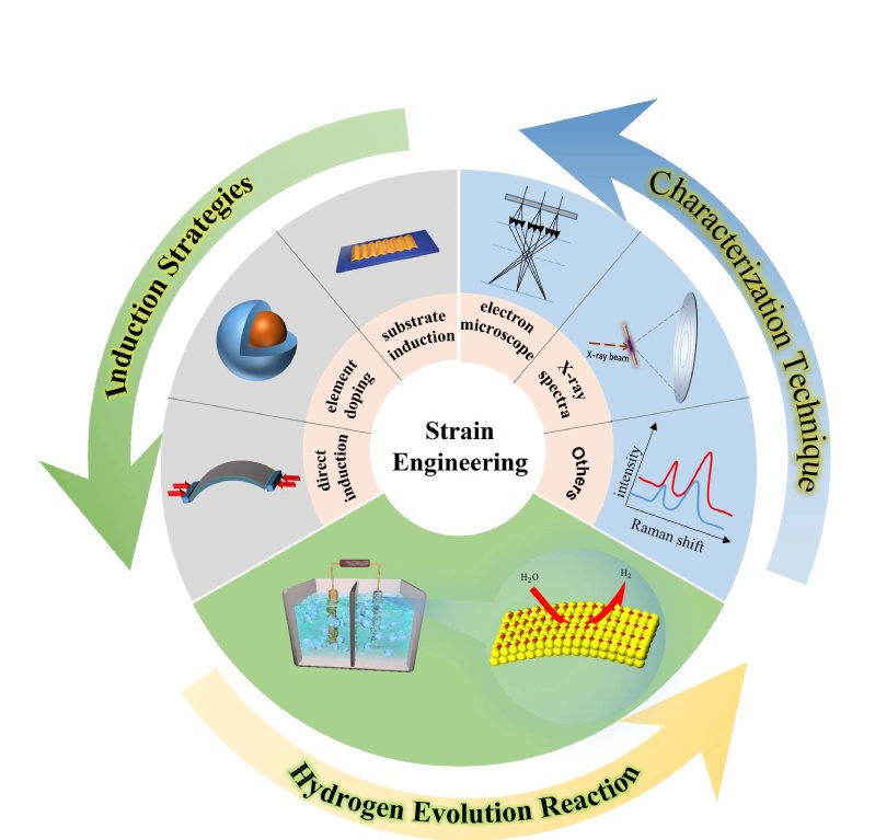 图片说明:应变工程的引入策略、先进表征技术和析氢应用