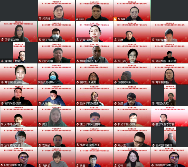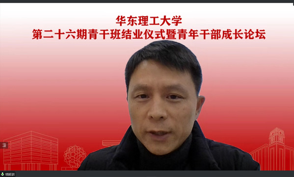 1月16日下午,校第26期青年干部培训班暨青年干部成长论坛采用线上的方式举行。校党委副书记项延训出席并讲话。结业仪式由校党委组织员兼党校副校长张黎主持。