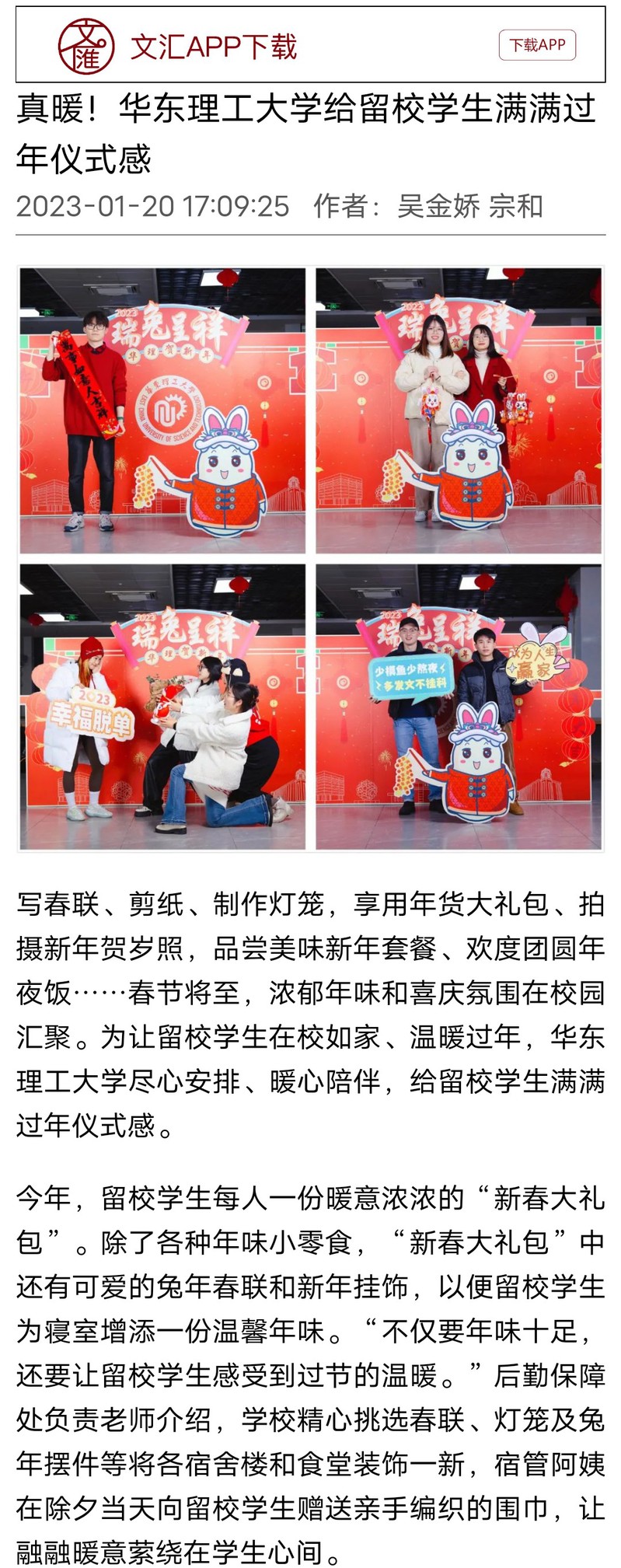 【文汇APP】真暖!完美官方在线入口给留校学生满满过年仪式感