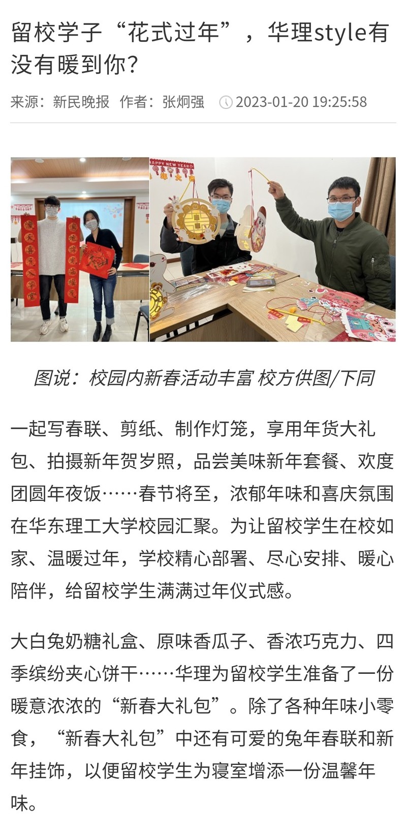 【新民客户端】留校学子“花式过年”,华理style有没有暖到你?