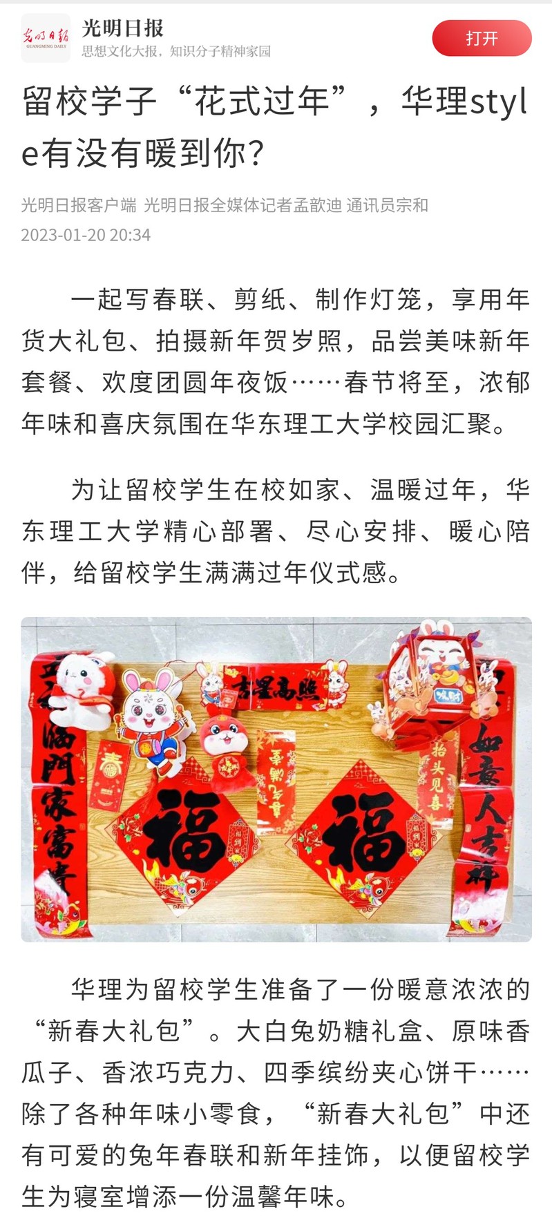 【光明日报客户端】留校学子“花式过年”,华理style有没有暖到你?