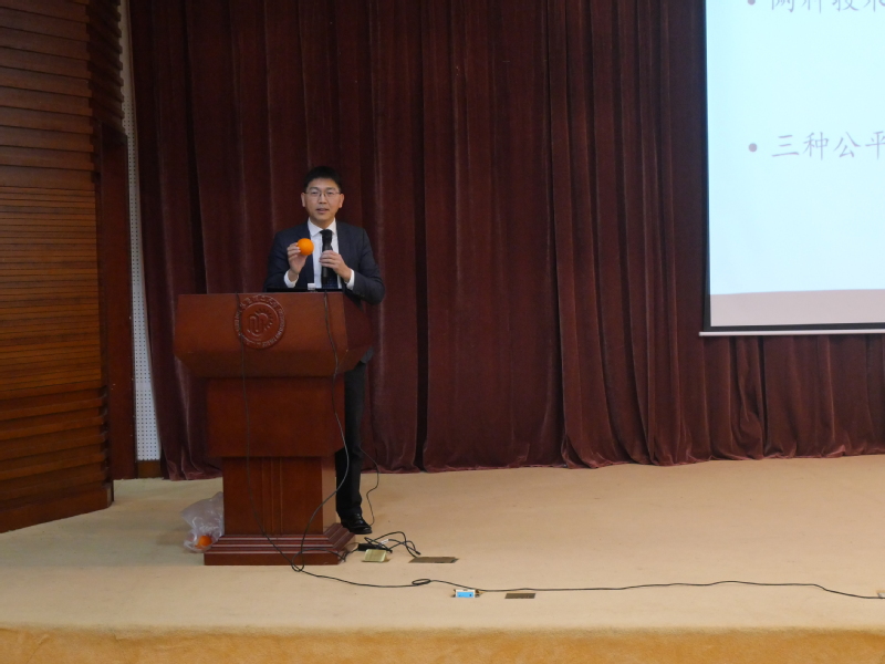 罗培新以卡尔•拉伦茨的名言引出其价值判断,借助道具生动形象地阐释了价值与技术的关系,以及无知状态、经济领域、社会领域3种公平观。通过多样化的现实案例,他从经济与社会领域的不同视角阐释了价值判断的不同路径。在对基础问题的探讨中,以现场互动的形式,从日常生活中常见的拾得遗失物的事例出发,分享了两种不同法治维度,带领大家关注事实行为背后的法律逻辑。同时,他旁征博引,从吕氏春秋、王阳明的“知行合一”思想到哈佛教授迈克尔•桑德尔的衡平性法治思维、康德的古典道德哲学,探讨不同情境下的价值判断与技术理性。