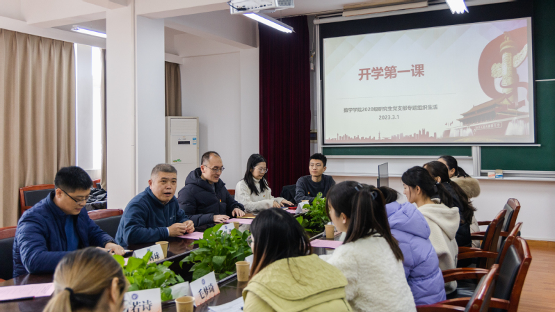 为深入学习贯彻党的二十大精神,强化青年学生的价值引领和人生指导,3月1日,数学学院2020级研究生党支部在八教505会议室召开“加强基础研究”专题组织生活会,以“开学第一课”为契机,通过师生共学习、同交流,以新风貌、新气象、新姿态迎接新学期的到来。副校长李涛作为联系指导支部的党员领导干部参加组织生活会并进行深入交流。会议由研究生党支部书记姜蓉主持。