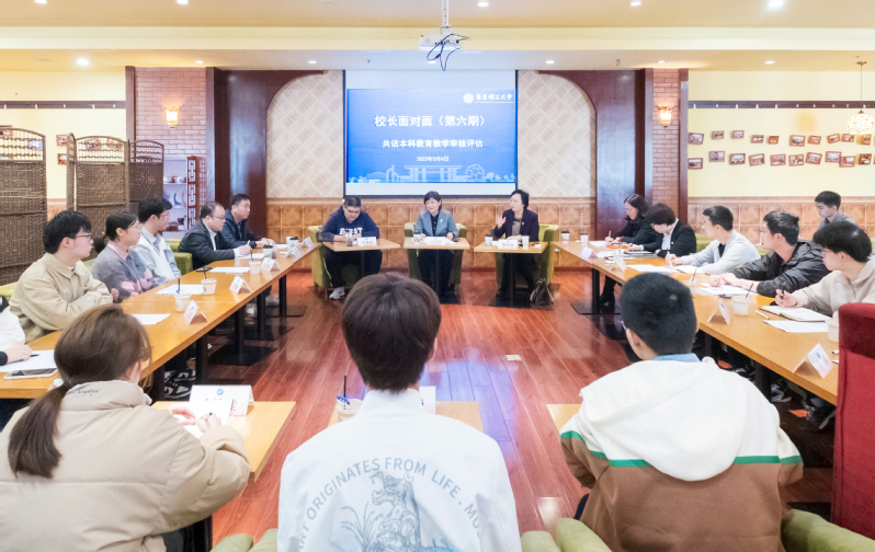 王慧锋认真听取了学生代表的发言,并表示学校始终坚持社会主义办学方向,全面落实立德树人根本任务,教育教学工作一直坚持以学生为中心,倡导因材施教。本科教育教学审核评估是学校今年的重点工作之一,同学们结合自身学习生活经历提出的建议都非常有价值,显现了青年学生对学校的关心和热爱。她对同学们提出三点希望:一是要做有责任感的人,对自己、对家庭、对社会负责,树立正确的世界观、人生观和价值观,要担当起责任,负责任地解决好生活中的问题;二是要做身心健康的人,对于学习和生活中出现的挫折和困难,要积极面对,适应好社会大环境;三是要做勇于前行的人,既要树立远大目标,更要脚踏实地为了实现目标而努力。