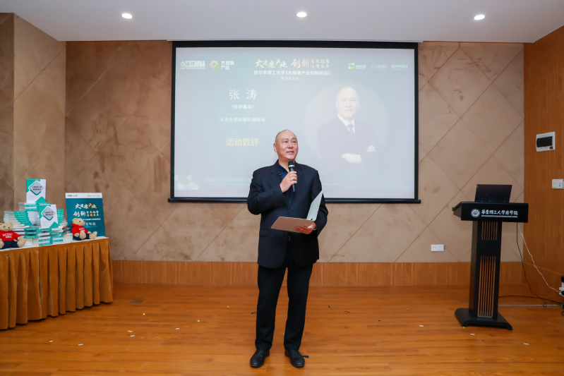 随后,北京大学出版社副社长张涛发表致辞。他表示,大健康产业是一个涉及民生的重要行业,华理商学院在大健康全产业链管理产业人才培养上作出了积极探索,为大健康产业的健康发展作出了贡献,希望通过此次发布会,能够让更多的人对健康产业有一个全新的认识和思考。