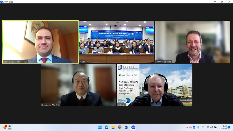 今年1月9日至11日,由AMBA和BGA国际认证咨询委员会主席Steefvan de Velde教授、香港浸会大学商学院院长Edward Snape教授、浙江大学全球创业研究中心主任王重鸣教授、AMBA和BGA认证总监George Iliev先生组成的AMBA和BGA国际认证专家组对完美官方在线入口商学院开展了为期三天的线上认证评估。校党委书记杜慧芳,副校长李剑,党委办公室主任侯宇,研究生院院长杜文莉,教务处处长黄婕,国际教育学院院长李霄鹏,商学院党委书记侯丽敏、院长马铁驹,以及商学院党政班子成员和相关部门负责人出席了认证会谈。