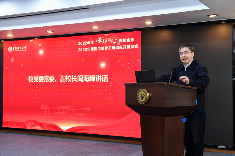 为学习宣传贯彻党的二十大精神,不断提升后勤中层及骨干的综合能力,学校于4月6日上午在逸夫楼演讲厅举行2022年度“最美后勤人”表彰暨后勤中层骨干培训会开班仪式。校党委常委、副校长阎海峰,上海市教委后勤保卫处处长张旭,后勤党政班子成员、中层骨干及获奖员工代表参加会议。会议由后勤党委书记、后勤保障处处长岳海洋主持。
