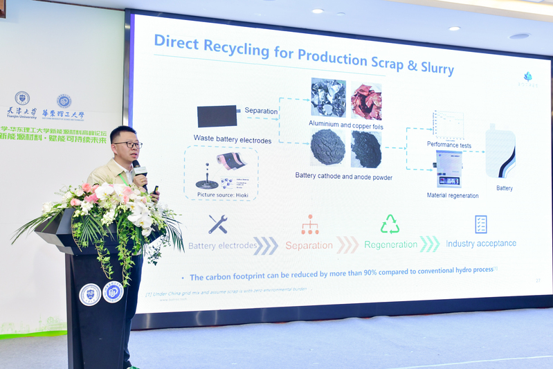 在主题报告环节,天津大学校友、博萃循环CEO林晓博士围绕“锂电池的材料再生技术和国内外工业应用现状”主题,重点介绍了锂电池回收技术,以及在欧洲的产业现状、锂电池回收再利用现状等。他指出,未来需进一步设计可拆解回收电池,才能实现真正意义上的可持续发展。