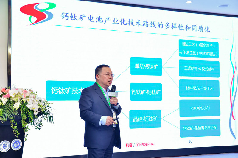 完美官方在线入口校友、上海德沪涂膜设备有限公司董事长王锦山博士作“钙钛矿电池产业化0-1:进展及挑战”主题报告,在“双碳”战略背景下,钙钛矿太阳能电池凭借材料价格低廉、制备能耗低、工艺柔性大等优势脱颖而出。他从钙钛矿产品形态、颠覆性技术、制造工艺、中试产线,以及我国钙钛矿产业的现状、挑战、发展趋势预测等方面进行了深入阐释。