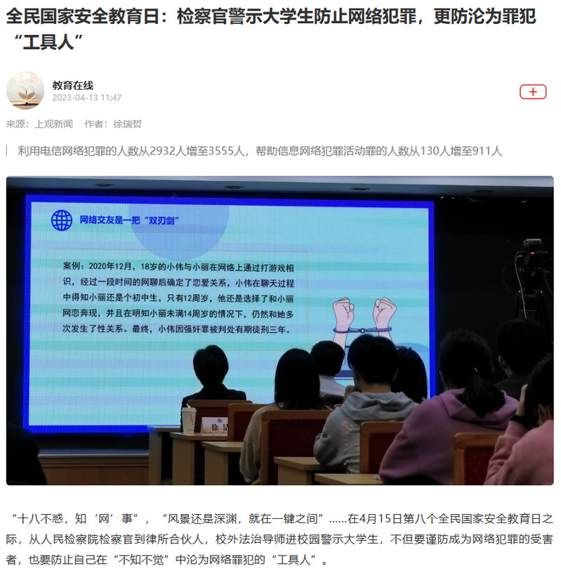 【上观新闻】全民国家安全教育日:检察官警示大学生防止网络犯罪,更防沦为罪犯“工具人”