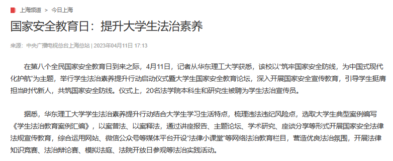 【中央电视台】国家安全教育日:提升大学生法治素养