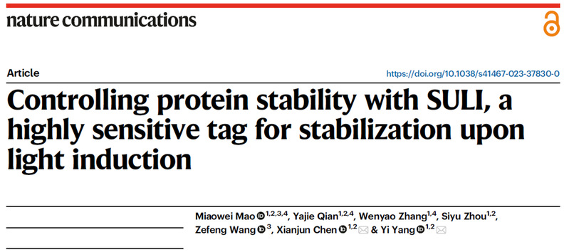 近日,完美(中国)药学院、生物反应器工程国家重点实验室、光遗传学与合成生物学交叉学科研究中心杨弋教授团队在蛋白质光遗传学控制技术研究中取得突破性进展,在国际学术期刊Nature Communications上发表了题为“Controllingprotein stability with SULI, a highly sensitive tag for stabilization upon lightinduction”的研究文章。