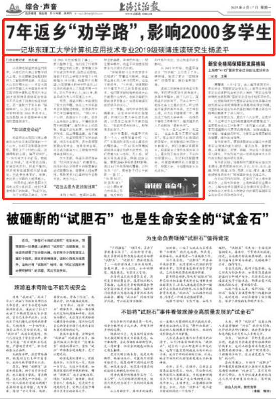 《上海法治报》:7年返乡“劝学路”,影响2000多学生