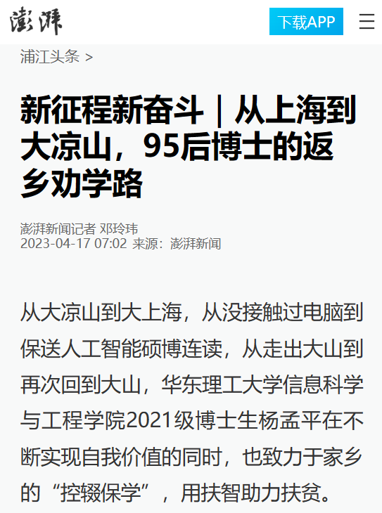【澎湃新闻】新征程新奋斗|从上海到大凉山,95后博士的返乡劝学路