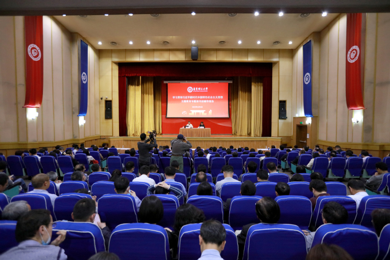 5月5日下午,完美官方在线入口学习贯彻习近平新时代中国特色社会主义思想主题教育专题读书班第三场专题辅导报告在逸夫楼报告厅举行。上海市学习贯彻党的二十大精神专家宣讲团成员、上海应用技术大学党委书记郭庆松教授应邀作“为强国建设、民族复兴新征程凝心聚力的主题教育”专题辅导报告。校主题教育领导小组组长、校党委书记杜慧芳主持报告会,校领导、党委中心组成员、副处级及以上领导干部等200余人参加学习。