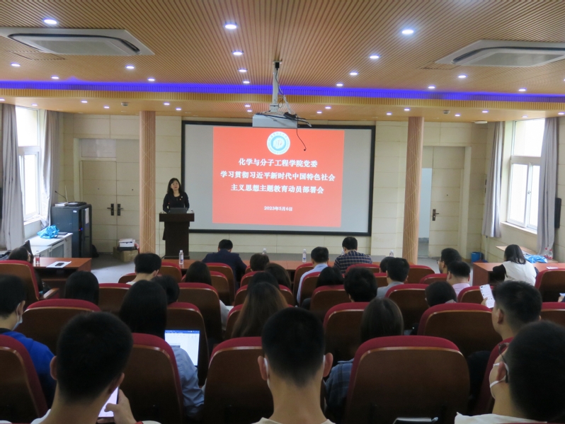 5月6日上午,化学与分子工程学院举行了学习贯彻习近平新时代中国特色社会主义思想主题教育动员部署会。学院领导班子成员、党委委员、内设机构负责人、党支部书记、师生党员代表等70余人参会,校主题教育第七联络组联络员王梦雪列席会议。会议由学院党委书记张文清主持。