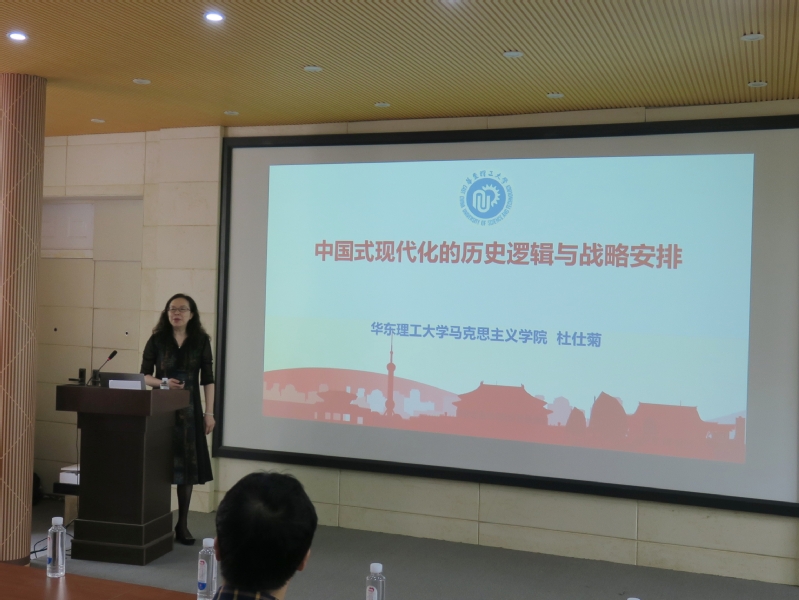 随后,马克思主义学院杜仕菊教授应邀作“中国式现代化的历史逻辑与战略安排”主题教育专题辅导报告。杜教授结合党的二十大报告相关内容,从“中国式现代化的历史逻辑、中国式现代化的鲜明特色和本质要求、中国式现代化的战略任务和战略安排”三个方面为大家详细解读了中国式现代化的来源、历史演进、关系思考、五大特色、本质要求和内涵以及战略安排等内容,进一步加深了师生对中国式现代化的理解,坚定了大家为全面建设社会主义现代化国家、以中国式现代化全面推进中华民族伟大复兴的信念和决心。