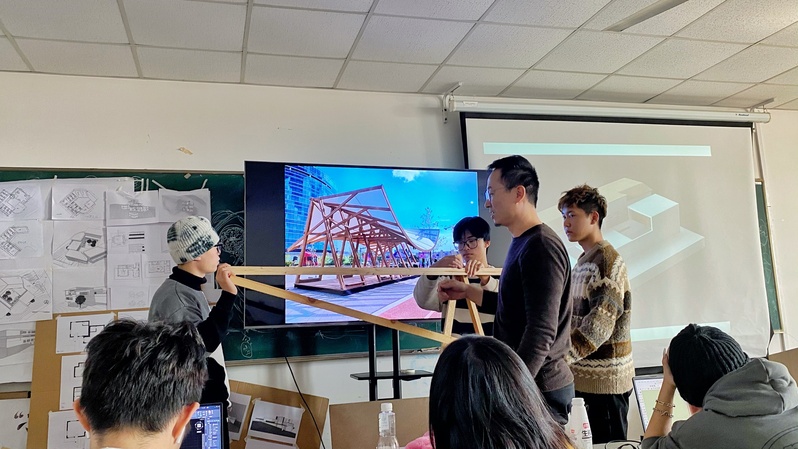 “目前设计行业的变革如同航行中经历风浪,老师只有自己在海里游过泳,呛过水,经过风浪,才能告诉同学们如何不呛水,如何在风浪中幸存。”作为一名一线建筑设计师,尹舜也亲身实践,希望将自己的经验教授给学生,让同学们可以“少走弯路”。谈到当今我国建筑设计现状,他提到现在的设计正转化成更适应我们国家现状的形式和特征,建筑设计从本体而更加面向社会,转向为可以为大多数人创造美好生活。“我刚开始教学的前几年,在材料与构造课当中会更多地和同学们讲基础的构造与结构知识。但随着这两年社会行业发展变革,我会更多地倾向于让同学们去了解低碳绿色设计,因为这是亟需思考和应用的,而传统的基础知识则可以在工作后通过实践快速熟悉。”