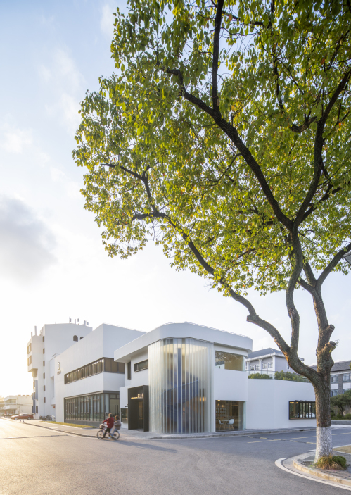 立夏后的徐汇校区,枝头凝翠,青春河在流经陇上书店时慢了下来,似乎在驻足欣赏这一独特又美丽的建筑。作为华理的“网红”打卡点之一,陇上书店 外观犹如一个白色极简的盒子,在夜晚会有暖黄的灯光从玻璃中透射出来,灯塔一般照亮莘莘学子的心。而当阳光洒下,在其旁边的晨园好似一个“世外桃源”,又像一个充斥着艺术气息的开放美术馆,吸引了过往师生的目光。这几栋怀旧与现代、时间与空间、理性与浪漫融合的建筑改造设计者,就是华理艺术设计与传媒学院的尹舜老师。