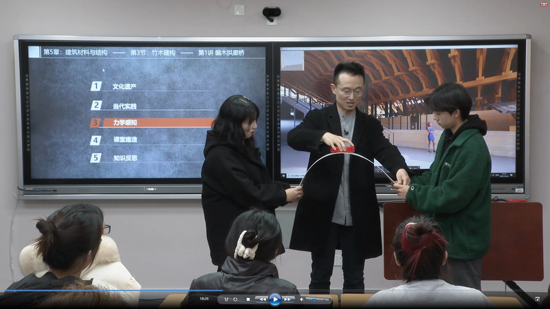 同时,尹舜还是一位精于授课“艺术”的老师。他通过“项目式PBL和小组式TBL”教学的融合,形成多维激励营造互助互进的学习氛围,将其打造成“新文科”建设中的“金课”,探索让设计走向生活的“真实建造”实践,让学生们真切地感受到设计的魅力与价值。在课堂任务的布置中,尹舜也强调良性竞争的重要性,“通过分组,可以更好地调动同学们互相竞争的积极性,各组也可以选出负责的组长进行统筹安排。”他还鼓励各组使用虚拟漫游的VR手段去代替传统的评图方式,最后让大家将设计过程和成果制作成视频,并吸收当下互联网主流的传播方式,从而将“为人民设计”的理念传播出去,让同学们在保持积极性、收获乐趣的同时也学习到理论和实践知识。