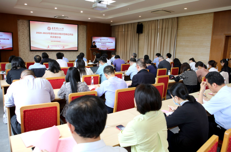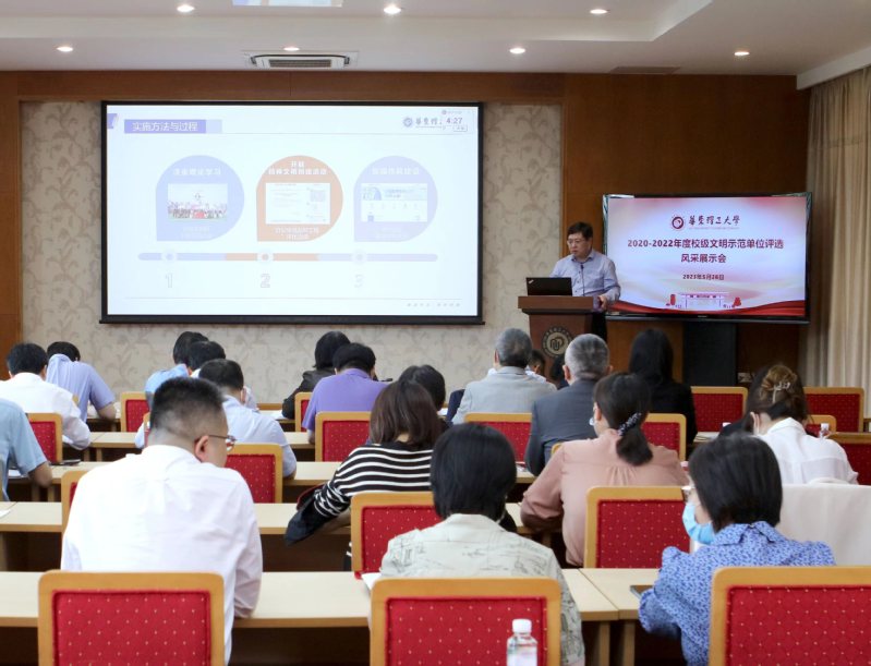 展风采,促文明,5月26日下午,2020-2022年度校级文明示范单位评选风采展示会在和平楼第二会议室举行。财务处、党委组织部(党校)等31家单位围绕3年来在精神文明创建过程中的主要做法、特色亮点、成功经验和创建成效进行了全面展示。