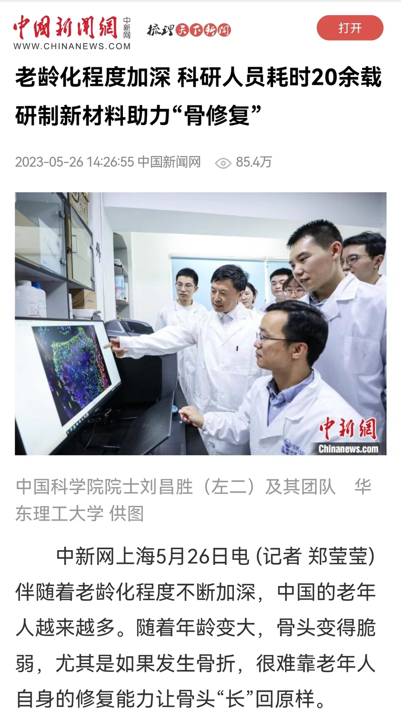 【中国新闻网】老龄化程度加深 科研人员耗时20余载研制新材料助力“骨修复”