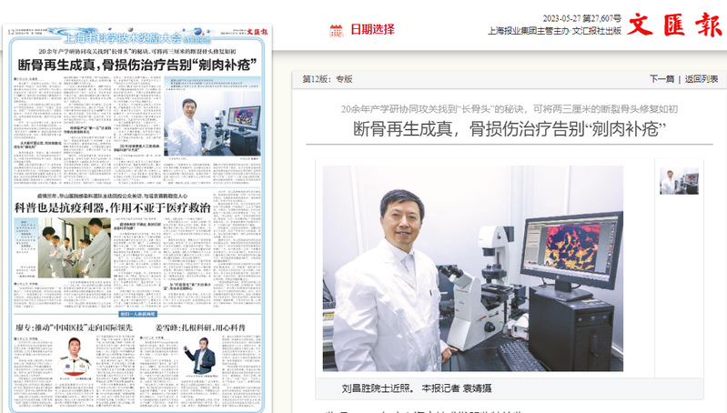 《文汇报》断骨再生成真,骨损伤治疗告别“剜肉补疮”