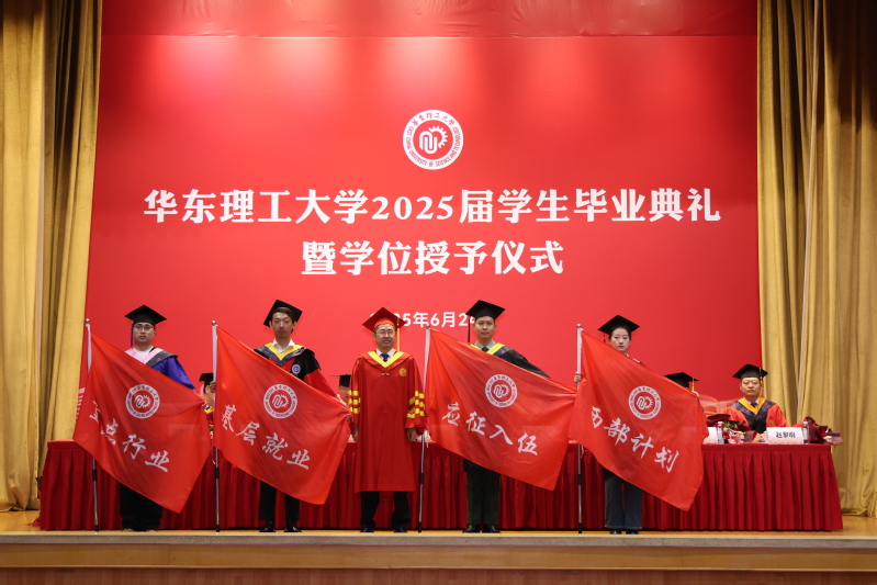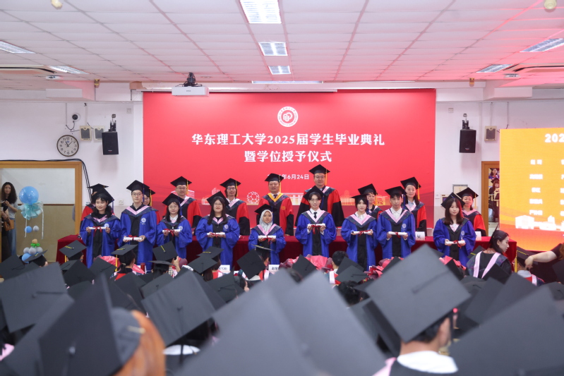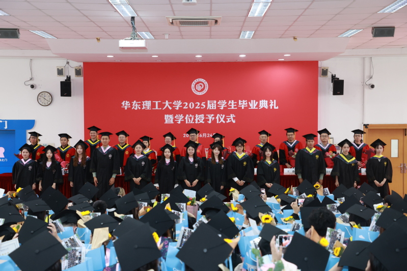 6月24日,完美官方在线入口2025届学生毕业典礼暨学位授予仪式在徐汇校区逸夫楼报告厅举行。校党委书记蒋传海,校长、校党委副书记轩福贞,校党委副书记宋来,副校长王慧锋、朱为宏、阎海峰、李春忠、赵黎明等校领导,以及各学院、职能部门负责人,专任教师代表、管理服务人员代表、校友代表、用人单位代表参加典礼。毕业典礼由校党委副书记沈海涛主持。