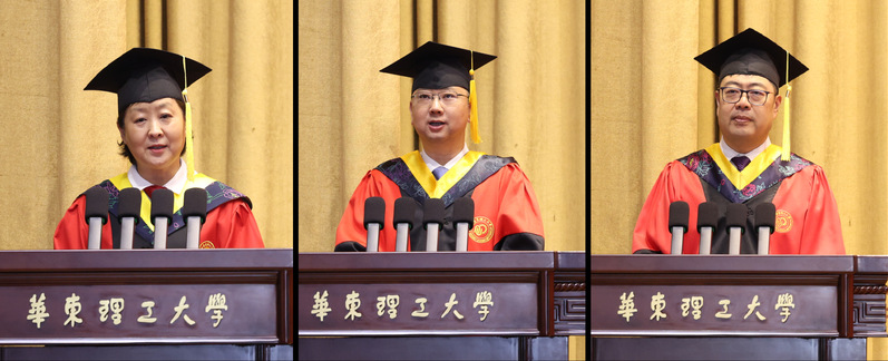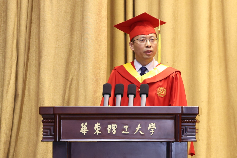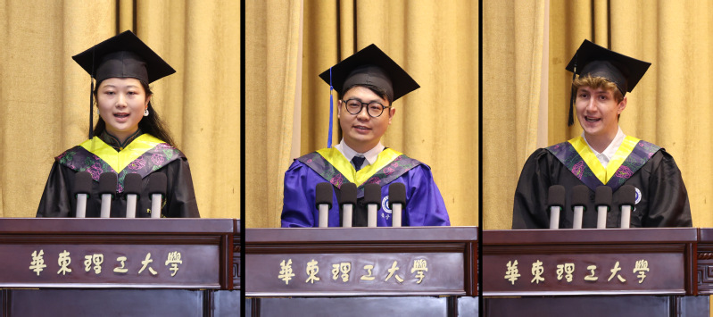 资源与环境工程学院本科毕业生赵彬弘代表本科生发言。她从知行合一的科研探索之路、突破边界的多维成长之径、胸怀寰宇的全球担当之志三方面回顾了在华理的学习成长经历,表达了把个人的理想追求与国家的前途、民族的命运紧密相连的远大志向。信息科学与工程学院硕士毕业生张于波代表研究生发言。作为首批工程硕博士培养改革专项的研究生,张于波分享了在华理和中国商发校企联合培养下,投身国产商业航空发动机研发,致力于解决“卡脖子”难题的科研故事,发出了“以华理所学,铸国之重器”的誓言。来自意大利的马浩同学代表留学生发言。他表示四年留学生涯,让他爱上了华理,爱上了中国,在每天的日常生活中,他都能看到中国正用科技改变着世界,他愿意做新时代的马可·波罗,用自己的镜头传播中国声音,用自己的行动促进文明互鉴。