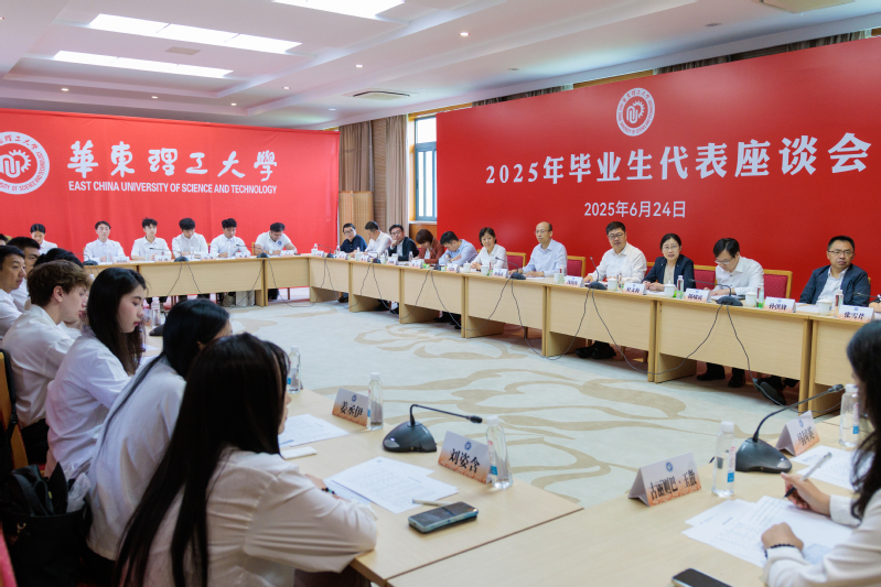 6月24日下午,2025届毕业生代表座谈会在徐汇校区和平楼第二会议室召开。校长轩福贞出席会议并讲话,党委常委、副校长王慧锋,校长助理、研究生院院长杜文莉出席会议,26名毕业生代表及相关职能部门负责人参加座谈会。会议由校党委副书记沈海涛主持。