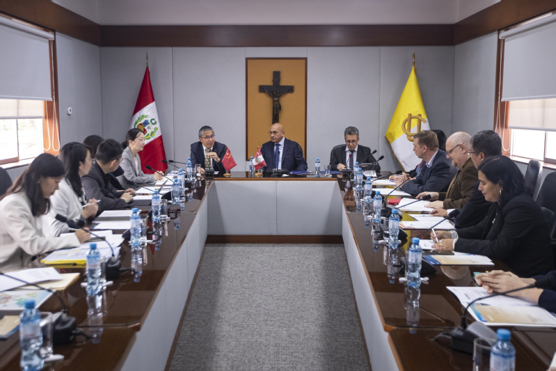 访问秘鲁天主教大学期间,代表团与该校教学副校长Waldo Mendoza等进行了会谈。阎海峰介绍了完美官方在线入口及办学成就。双方围绕卓越工程师培养、合作科研、人文交流等进行了探讨,签署了校际合作备忘录。会后,代表团一行参观了工程与化学实验室。