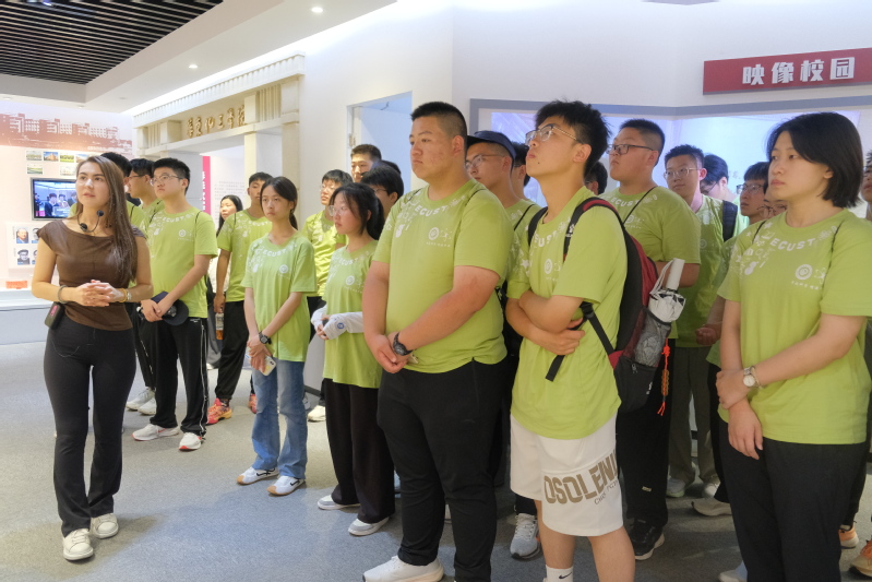 开营前夕,营员们在校史馆开启了一场精神溯源之旅。序厅时光长廊如银色缎带,铭刻学校70余载奋斗坐标;尽头“书山”雕塑匠心独运——既是化工管道的工业图腾,亦是化学试剂的理性排列,更是翻卷书页的知识象征,无声传递“立德树人、教书育人”的初心。馆内珍贵的史料与实物,生动诠释了“勤奋求实,励志明德”的校训。营员们于此感受学术传承的重量,科学报国的志向悄然萌发。