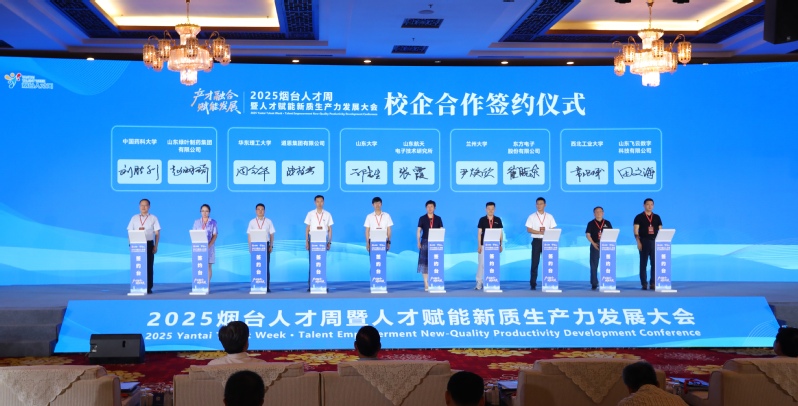 8月12日,2025烟台人才周暨人才赋能新质生产力发展大会在烟台国际博览中心隆重开幕。本次大会以“聚才赋能 智创未来”为主题,旨在搭建人才、产业与创新深度融合的高端平台,为烟台市高质量发展注入新活力。省委常委、市委书记江成,省委组织部副部长龚文东,市委副书记、代市长张明康,香港人才集团董事长骆勇等领导嘉宾出席活动,市委常委、组织部部长高建广主持开幕式。校党委副书记沈海涛应邀参会,并代表学校与企业合作洽谈,深入开展访企拓岗行动,助力校地企协同发展。