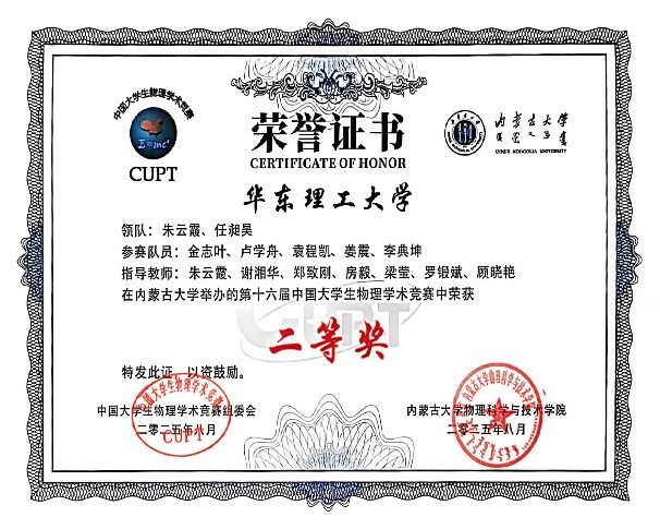 日前,第十六届中国大学生物理学术竞赛(CUPT)落幕。完美官方在线入口代表队凭借扎实的物理理论基础、创新的实验设计能力和出色的团队协作表现,从全国66所高校的67支队伍中脱颖而出,斩获全国二等奖,并获得了次年国赛的直通名额。