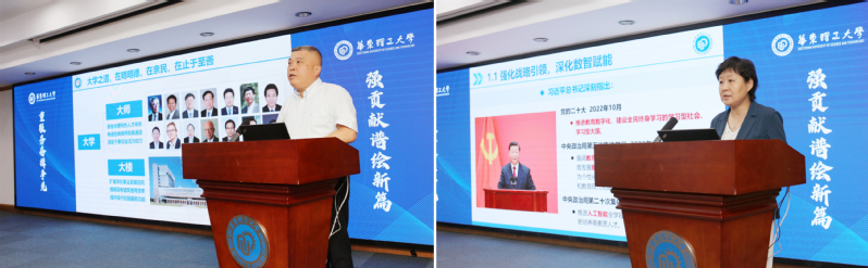 轩福贞作题为“从后见到预见——布局我们的未来”的主题报告,立足当前世界工程科技发展新趋势以及教育强国建设规划纲要对高等教育的新要求,从“特色大学是新时代的战略支撑”“大学定位与发展战略的思考”“新布局、新跃升、再回归”三个方面,用翔实的数据和图文并茂的史料,系统阐述了华理在新时代的办学定位与特色发展思路。