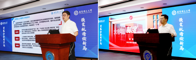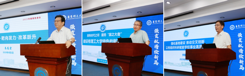 会上,校党委副书记沈海涛,校党委副书记、纪委书记龚跃,副校长李涛、王慧锋、朱为宏、阎海峰、李春忠,先后结合分管领域,以“面向‘十五五’ 从就业视角分析高质量发展对人才培养的需求”“大学的制度与文化”“资源向人才流动 空间为创新赋能 奋力构筑高质量发展新格局”“智领未来,育见卓越 携手打造高质量教育体系建设的数智化新生态”“规划引领·靶向发力·改革跃升”“聚焦时代之问 服务国之大者”“强化基地建设 推动交叉创新 以有组织科研赋能学校事业高质量发展”为题作专题报告,聚焦关键任务、直面难点堵点、前瞻研判谋划,深入交流了推动工作的思路和举措。