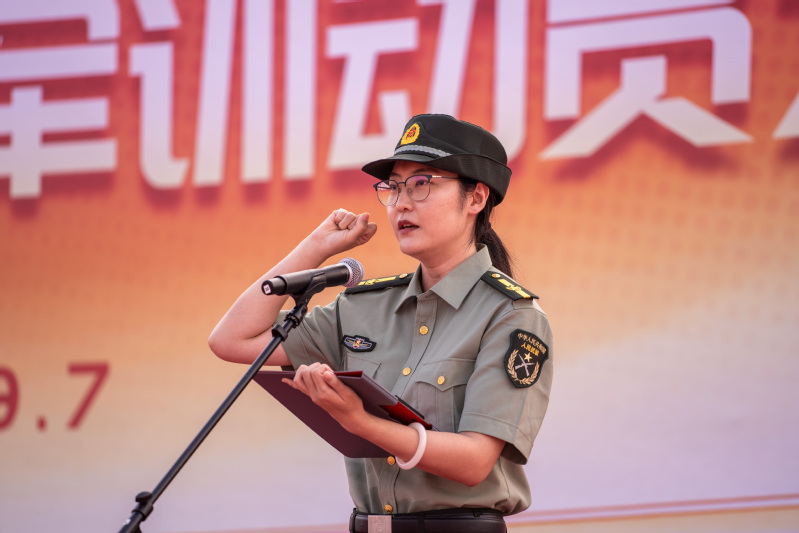 动员会上,军训团副政委程华宣读了军训团营长、教导员名单。承训部队教官代表在发言中表示,全体教官将严格遵守军训的有关要求和学校的管理规定,科学训练、精心组织,传承军人精神、弘扬爱国主义情怀,圆满完成军训任务,并希望同学们在军训期间,继承和发扬不怕苦、不怕累、艰苦奋斗的精神,以崭新的面貌迎接大学生活。资源与环境工程学院能源与经济双学位的魏政杰同学作为参训学生代表发言,表示李箐琳学姐在九三阅兵中光荣受阅的经历让每一位新华理人都倍感振奋,表达了将服从命令、听从指挥,以军人标准严格要求自己,牢记“学在华理,铸就卓越”的优良传统,以实际行动践行“请党放心、强国有我”的青春誓言。所有参训学生在军训团副政委赵洁琼的带领下进行宣誓。